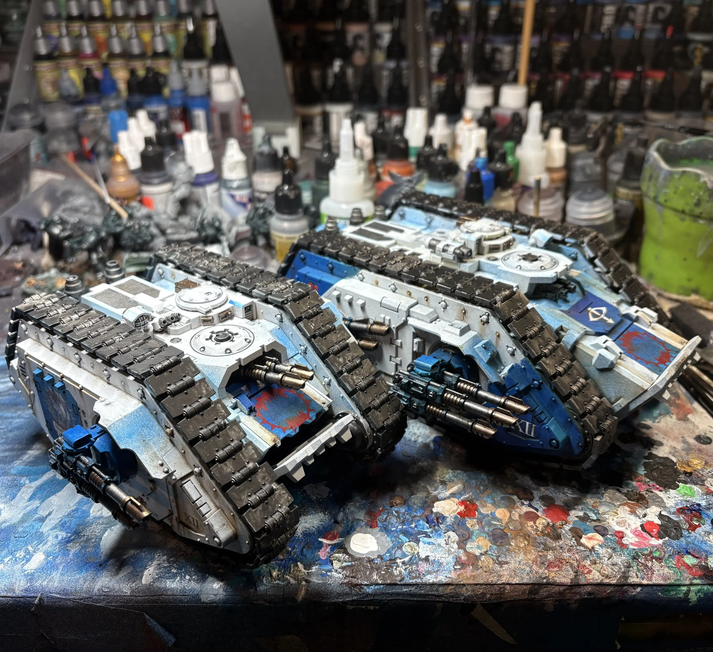 Well, that is a bit of a peak behind the curtain of my process, if it interests anyone. Otherwise, I will also add some WIP photos as well. I have a Land Raider and a Spartan relatively close to completion. I did the oils along with the Rhino and Contemptor but decided to finish them separately. The Rhino and Contemptor alone were both a few days work after oils. That is on a holiday schedule, where I actually might get less time per day to work, but still. The high after getting those two models completed was totally worth it!