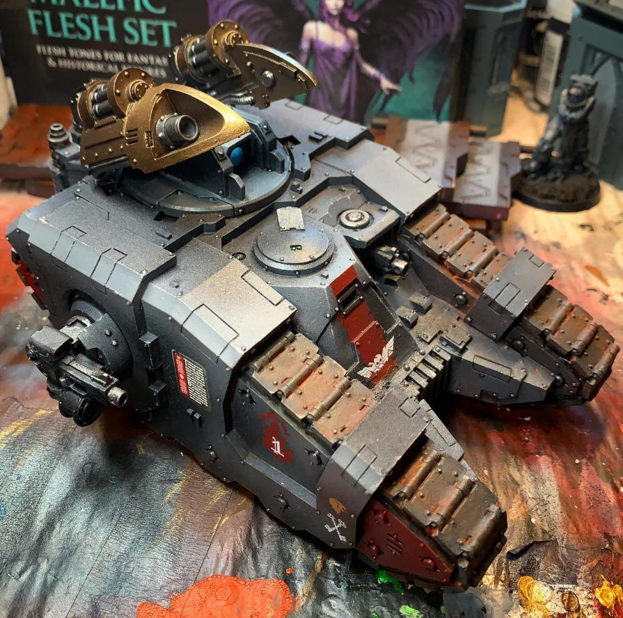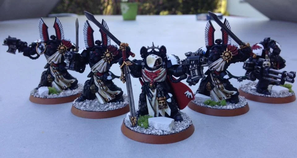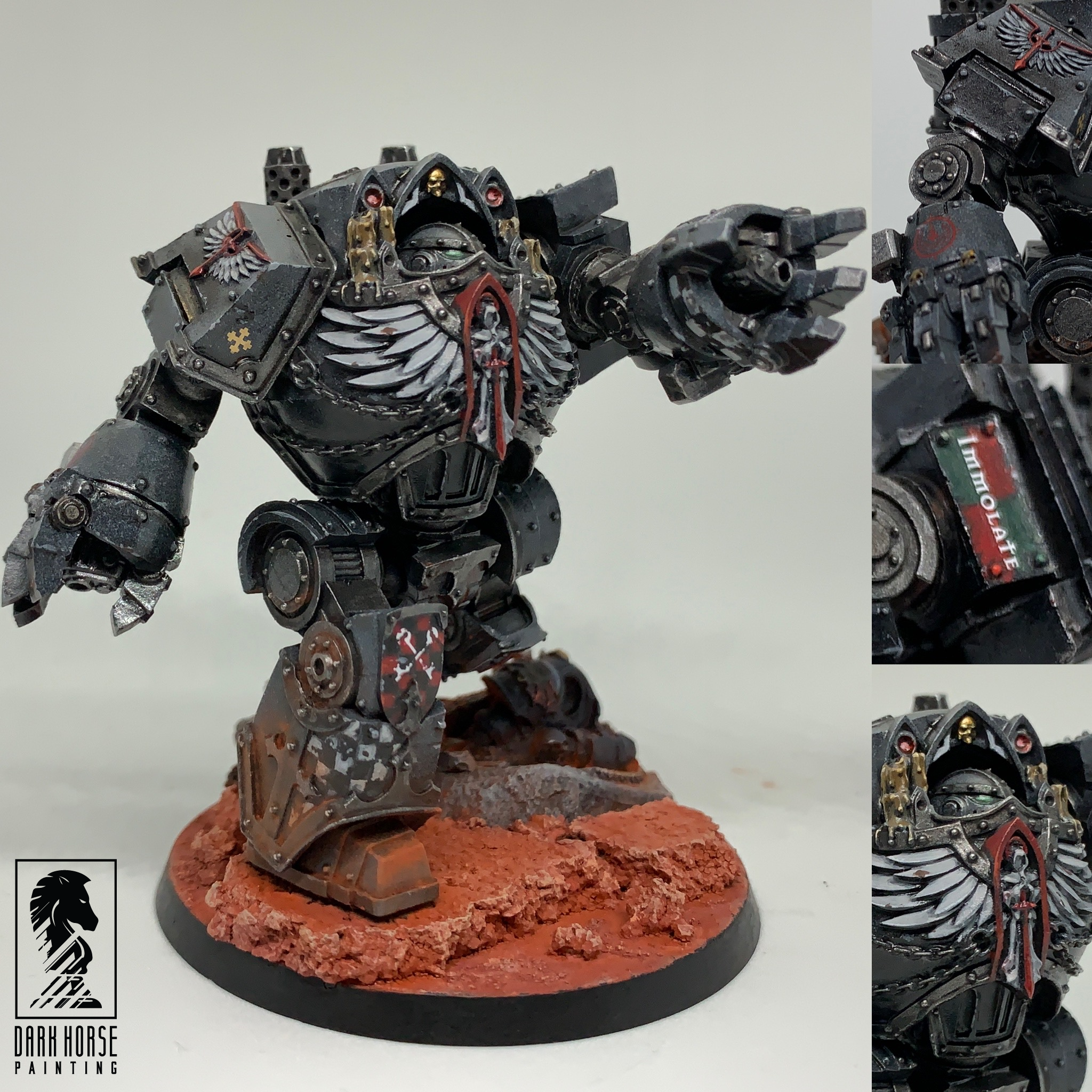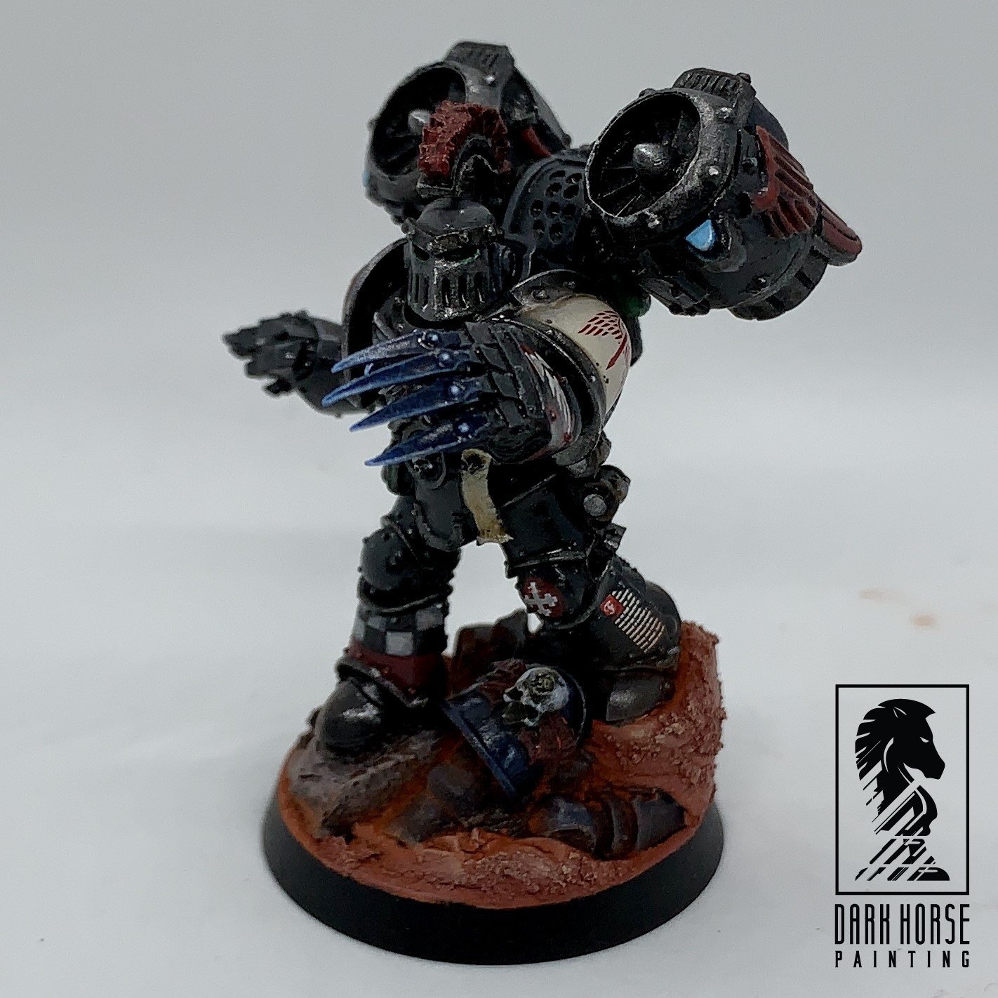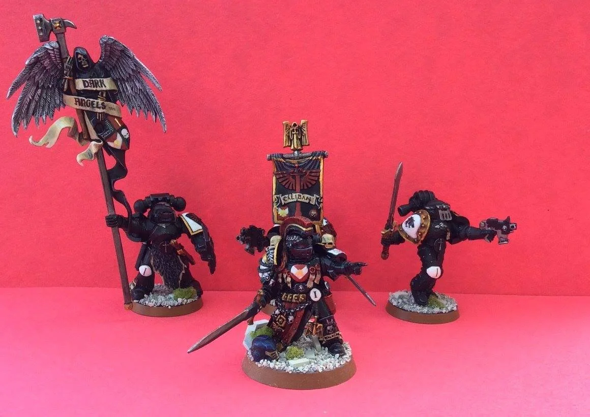 Since 2016, my style had evolved quite a bit. I updated my paint scheme, particularly the black. One of my favorite sayings is that I do not paint black or white, just various shades of grey. And that doesn’t consider color modulation. Anyway, I also had all these great decals and color plate references between Book 6 and Book 9. My aim for my Dark Angels was for every model to be bespoke. Not every Dark Angel is the member of a Wing, but several different Wings can be represented within the same squad of Tactical Marines, for instance. The Wing I fell for first was Firewing, so you will see considerable red and Firewing markings across the army.