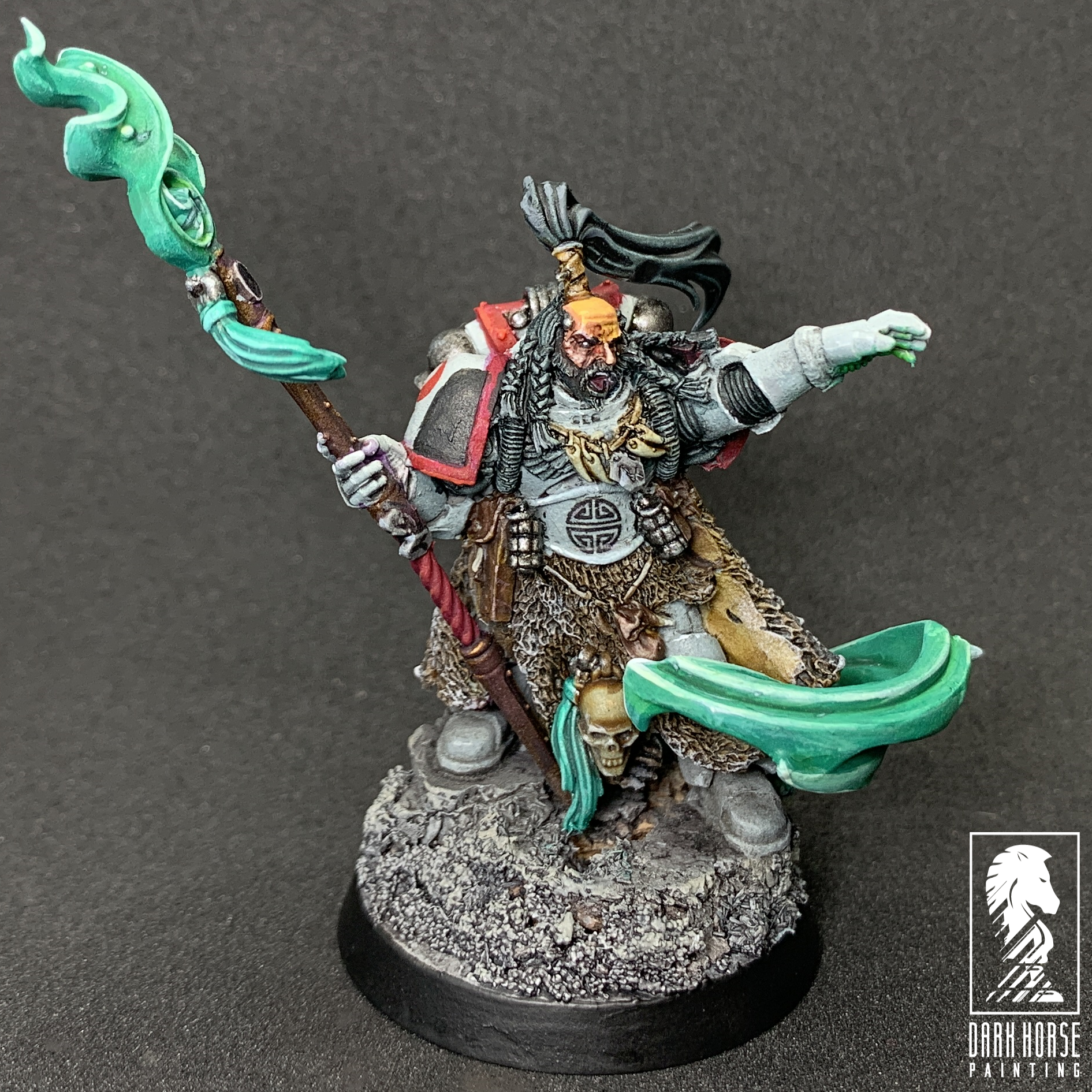 Kyzaghan Khan (name taken from the Turkic god of war, then later realized that is where Forge World got the name for the Land Speeder) is the warlord of my army. However, Oyuun Besud has a bit of a richer history. After foiling Calas Typhon numerous times, he earned his nickname from Chris.