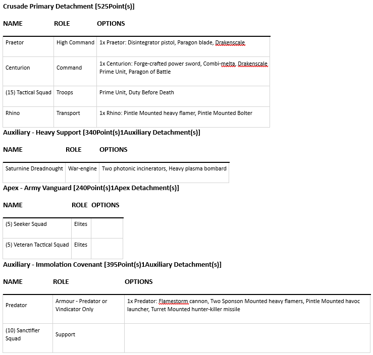 So, first below is my idea for 1500 points of Salamanders! At 1500 points, this isn’t much different than what I conceived of for my larger army. I was planning to use more Retinues than Elites. Post-Isstvan it seems like veteran units might be more apt.